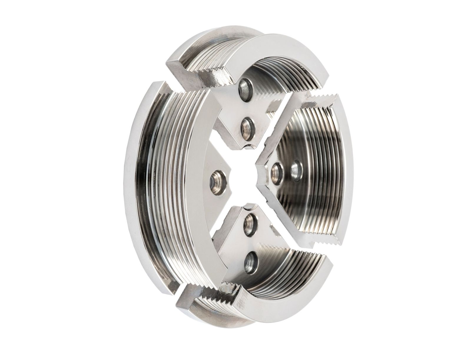 Neue, grosse PRO-TEK Spannzange, optimal für das Drechseln von Nassholz ("Greenwood"). Innen und aussen geriffelt. Ideal für die Verwendung beim Schalen vordrehen.